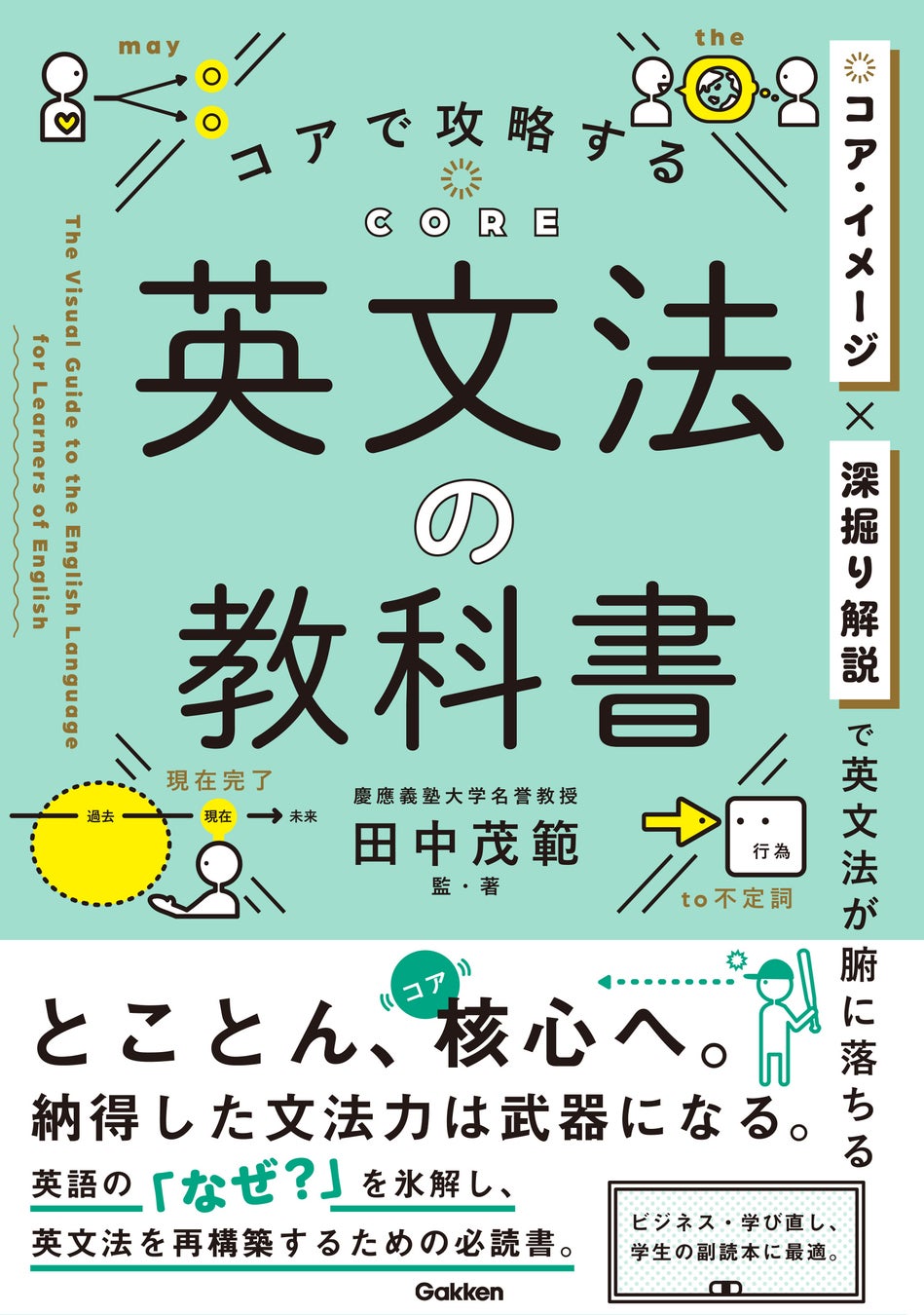 文法力なくして英語力はありません。文法力には「なるほど」という「実感をともなう理解」が必要。たとえば、「現在完了形」はどうしてhaveを使うのか? ”have”の本質(コア)がわかれば、文法の丸暗記から卒業できます。『コアで攻略する 英文法の教科書』は、コアとイラスト、そして説明文を組み合わせることで、「わかる英文法」の本を目指しました。