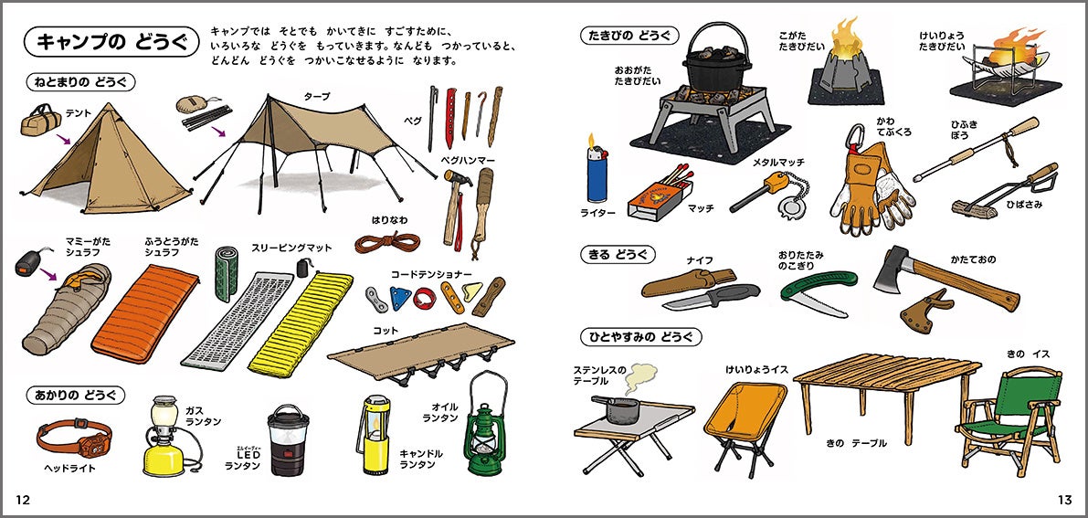 すぐに役立つキャンプの知識や持ち物が、子どもにもわかりやすくまとめられています。図鑑のサイズもコンパクトなので、キャンプへの持ち運びにも便利です。これからキャンプに挑戦したい方にはもちろん、既にキャンプ好きな方でも納得のボリュームなので、子どもとのキャンプ前の予習にもおすすめです。