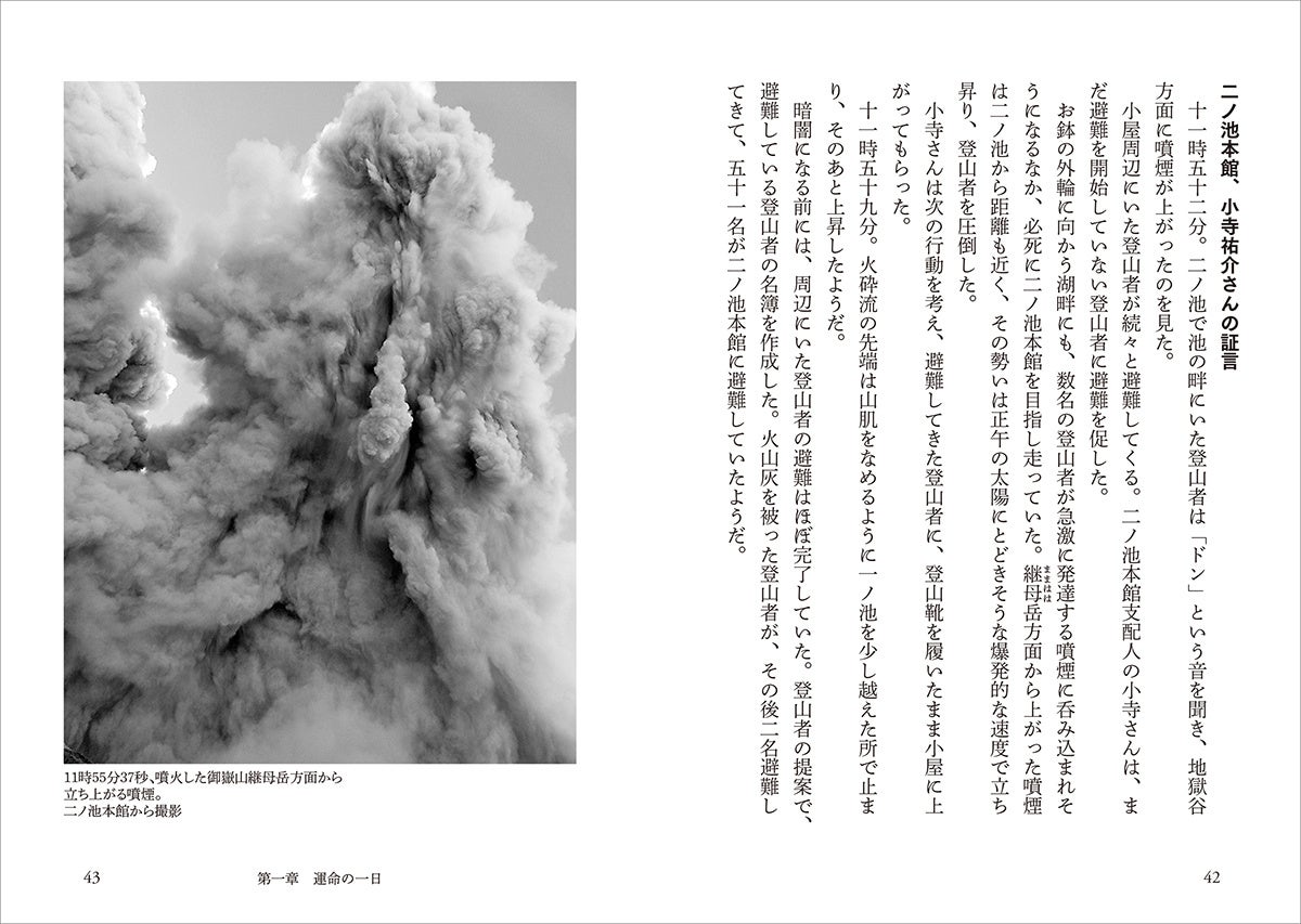 2014年9月27日。好天に恵まれ、紅葉の最盛期でもあった土曜日の御嶽山山頂は登山者でにぎわっていた。しかし11時52分、突如として水蒸気噴火が発生。火山ガスが噴き出し、巨大な噴石が飛び交うなか、登山ガイドである著者は頂上付近で被災しつつも生還できた。