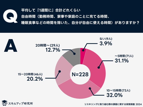 さらに、現状の自由時間に加えて1週間にどれくらいの追加時間があればリスキリングに取り組めるかを尋ねたところ、9割以上の人が20時間以下と回答した。つまり、労働者がリスキリングを十分に行うためには、現在の自由時間の約2倍の時間が必要であることが分かった。