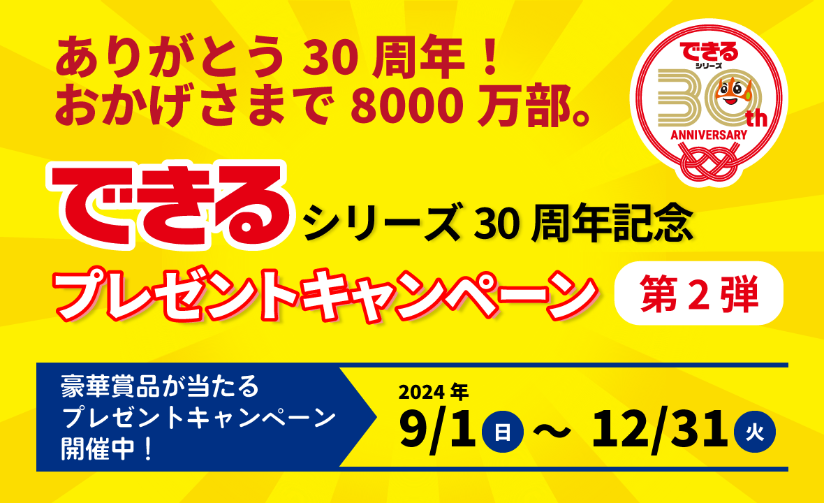ありがとう!「できる」シリーズ30周年!豪華賞品が当たるプレゼントキャンペーン第2弾を9月1日より開催!