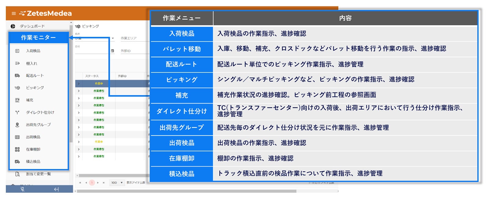 2. 倉庫作業指示、作業進捗の可視化が可能