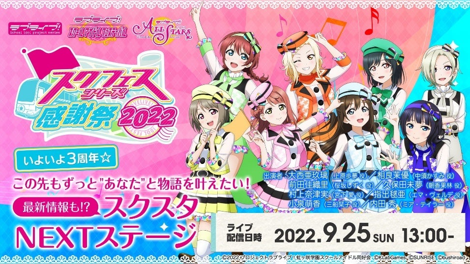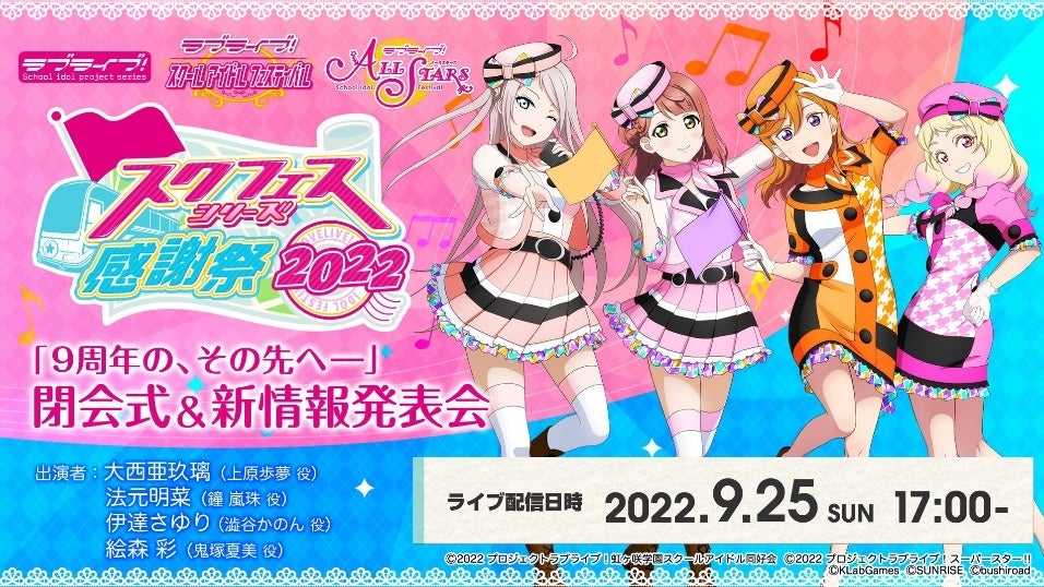 17:00~ 「スクフェスシリーズ感謝祭2022 「9周年の、その先へ--」閉会式&新情報発表会」