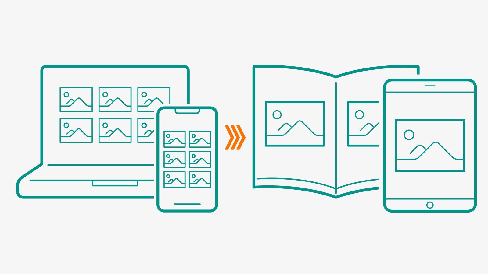 スマホで撮った写真も、パソコンで制作したイラストも、3ステップでオリジナルの本に。