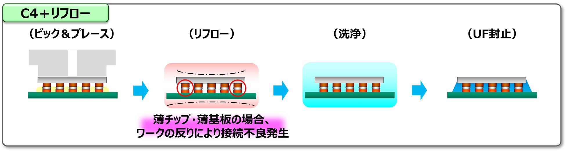 ・接合後の工程では従来のC4設備・材料をそのまま適用可能なため、低コストでの導入を実現します。