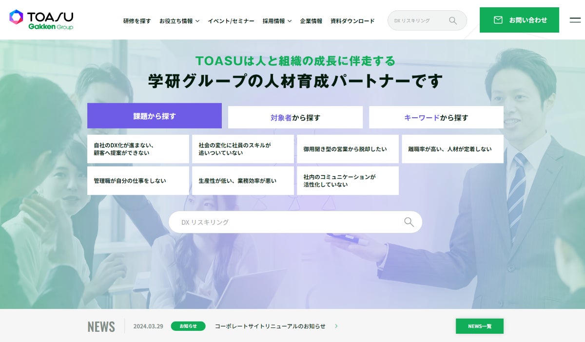 学研グループの人材育成パートナー【株式会社TOASU】より、コーポレートサイト全面リニューアルのお知らせ