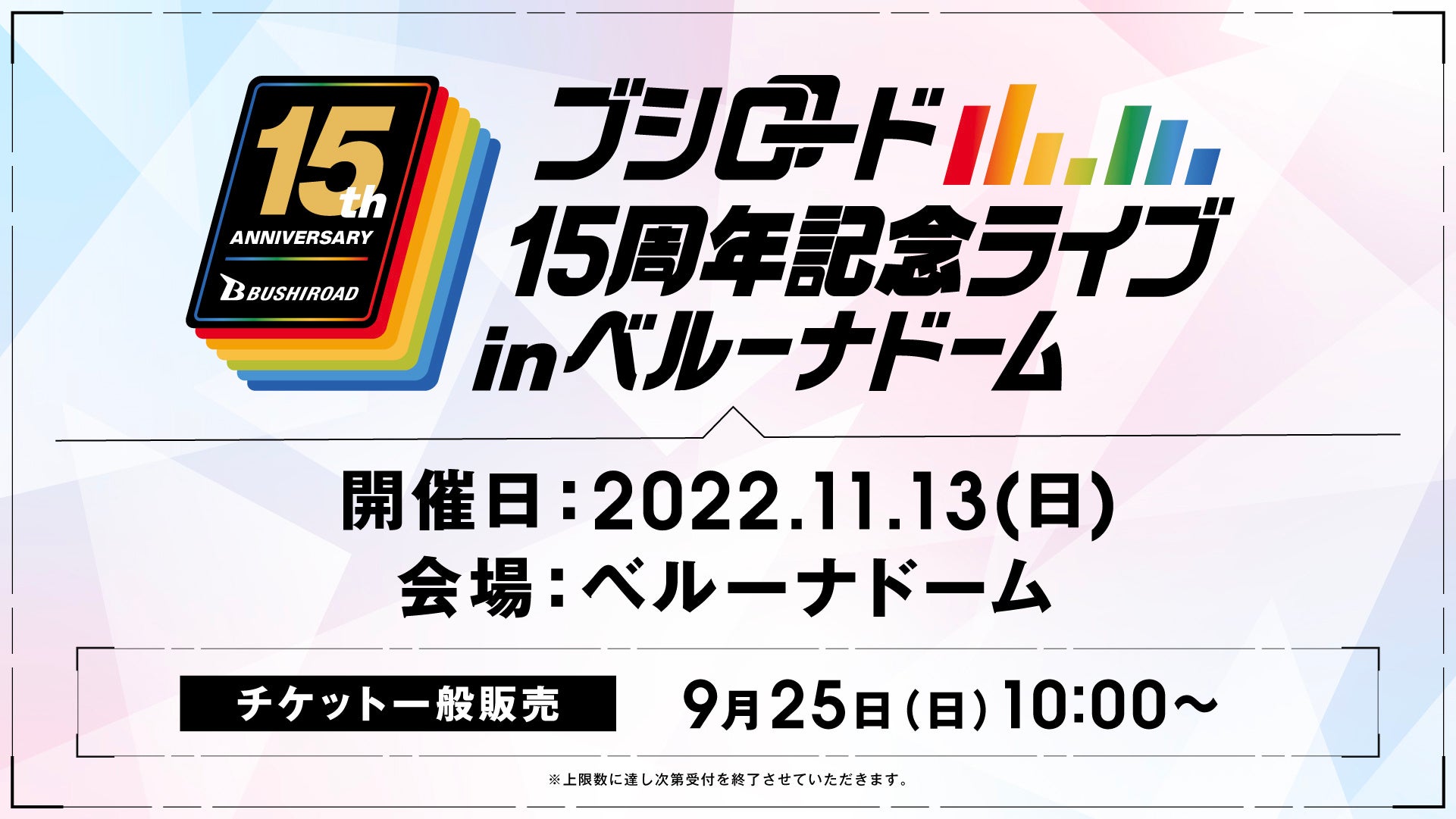 - 「ブシロード15周年記念ライブin ベルーナドーム」のチケット一般販売の受付が2022年9月25日(日)10:00からスタート!