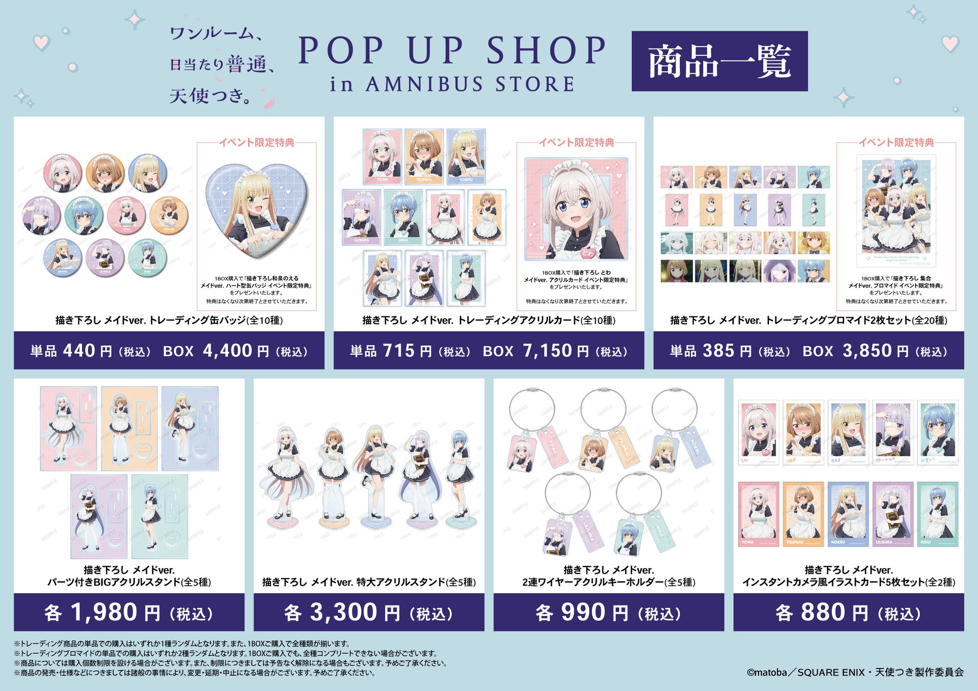 漫画・アニメのオリジナルグッズを販売する「AMNIBUS STORE」を運営する株式会社アルマビアンカ(本社:東京都中野区、代表取締役:坂井智成)は、この度、『ワンルーム、日当たり普通、天使つき。』 POP UP SHOP in AMNIBUS STOREを開催いたします。