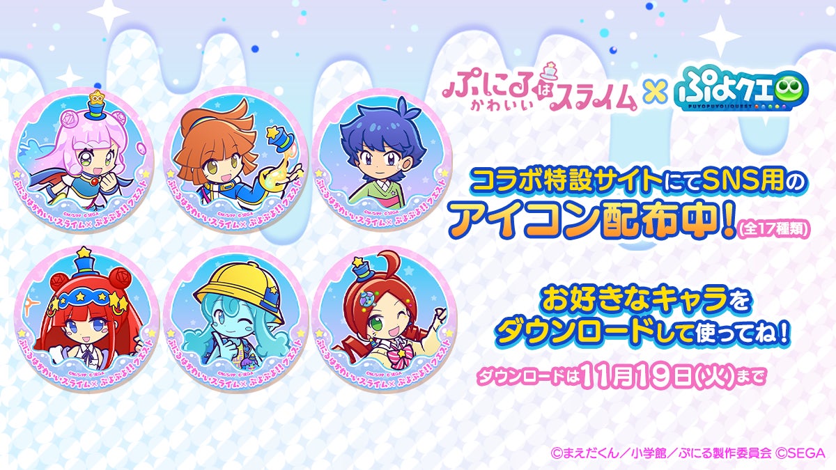 内容:コラボを記念して、『ぷよクエ』オリジナルデザインのキャラクターのSNS用アイコン(全17種)コラボ特設サイトにて配布中です。ぜひお好きなキャラをダウンロードして使ってみましょう!