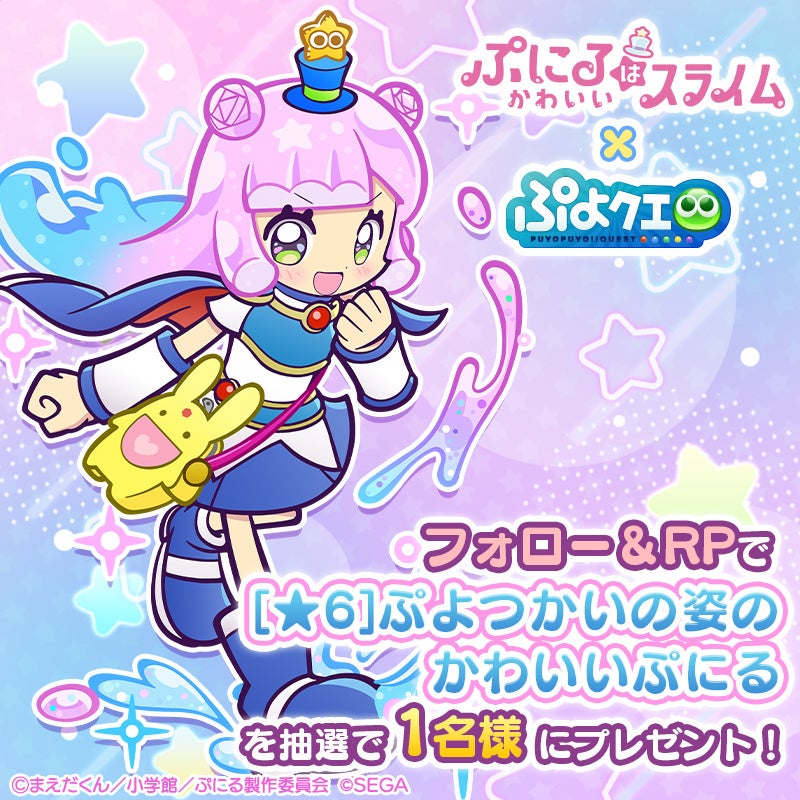 TVアニメ『ぷにるはかわいいスライム』とのコラボイベント開催を記念して、『ぷよぷよ!!クエスト(ぷよクエ)』公式Xアカウントと公式Instagramアカウントにて、キャンペーンに参加した方の中から抽選で、コラボに登場するキャラクターをプレゼントするキャンペーンを順次開催中です。ぜひご参加ください。