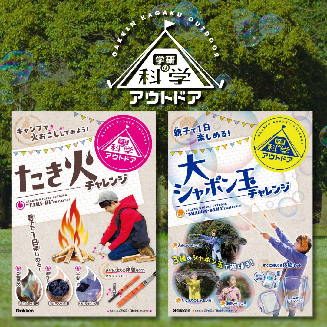 【新刊情報】『学研の科学』から新シリーズ『学研の科学 アウトドア』が登場! 第1弾は「火おこし&たき火実験」、第2弾は「大シャボン玉」の体験キット。全国の書店等で予約受付開始