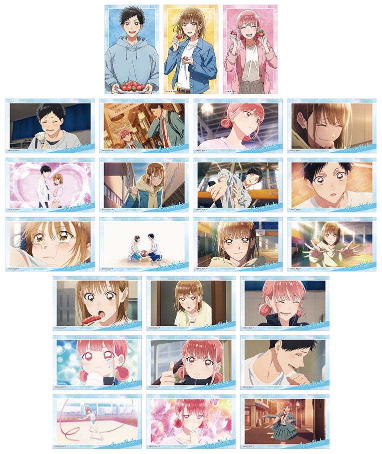 全国アニメイト・アニメイト通販で2025年1月11日~2月2日まで開催する【TVアニメ「アオのハコ」ウィンターフェア 2025 in アニメイト】では、期間中、「アオのハコ」関連商品をご購入・ご予約の方に、特典「ポストカード(全3種)」を1枚プレゼントいたします。特典絵柄は、“いちご狩り”をテーマにした大喜・千夏・雛の描きおろしイラストとなっています。