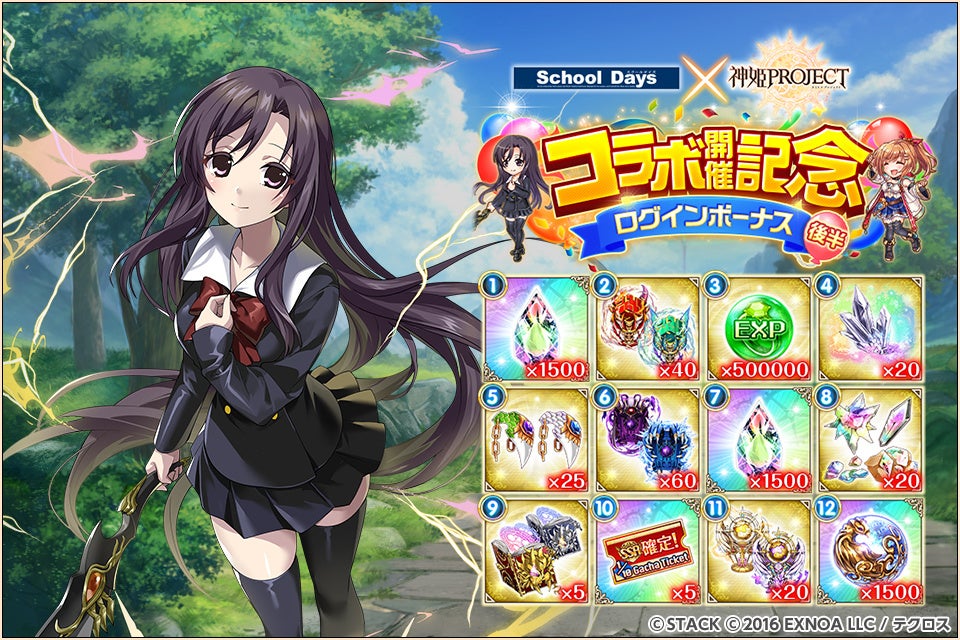 『神姫PROJECT』にて、『School Days』コラボが開催中!コラボ神姫『桂言葉』とコラボ衣装の『アポロン』が登場!さらにコラボを記念した1日1回無料10連ガチャも開催中!