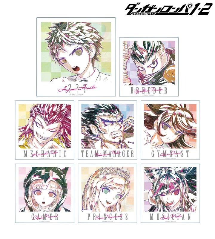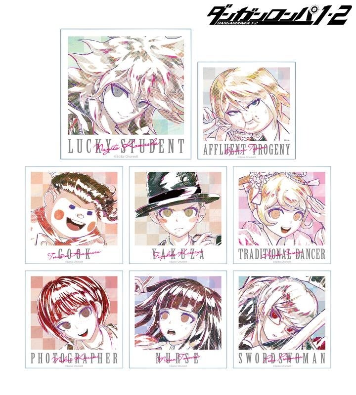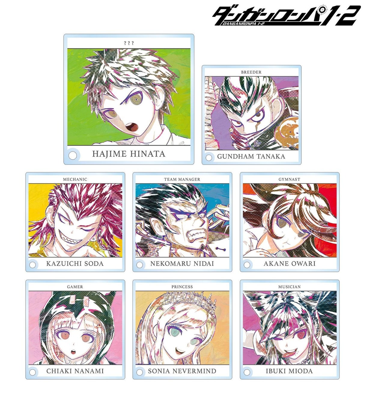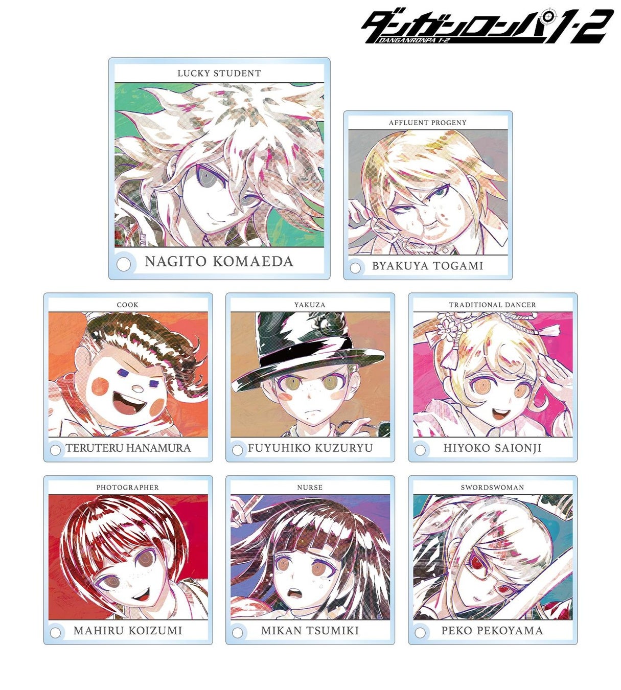 狛枝凪斗、十神白夜、花村輝々、九頭龍冬彦、西園寺日寄子、小泉真昼、罪木蜜柑、辺古山ペコのイラストを新たなタッチで魅力的に表現し、手のひらサイズのアクリルパネルに仕上げました。
