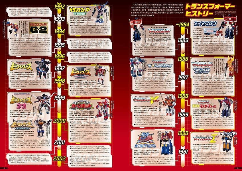トランスフォーマー40年の歴史を年表にして整理しました。歴代アニメシリーズ、実写映画シリーズをまとめて振り返ることができる充実した年表です。さらに、90年代に大ヒットし、いまだに熱狂的なファンが多い「ビーストウォーズ」シリーズを深掘りしました。CGの『ビーストウォーズ』『ビーストウォーズメタルス』『ビーストウォーズリターンズ』はもちろん、『ビーストウォーズⅡ』『ビーストウォーズネオ』も解説。脚本・シリーズ構成を務めた武上純希氏に行ったインタビューから、設定面での新たな事実も判明しました。