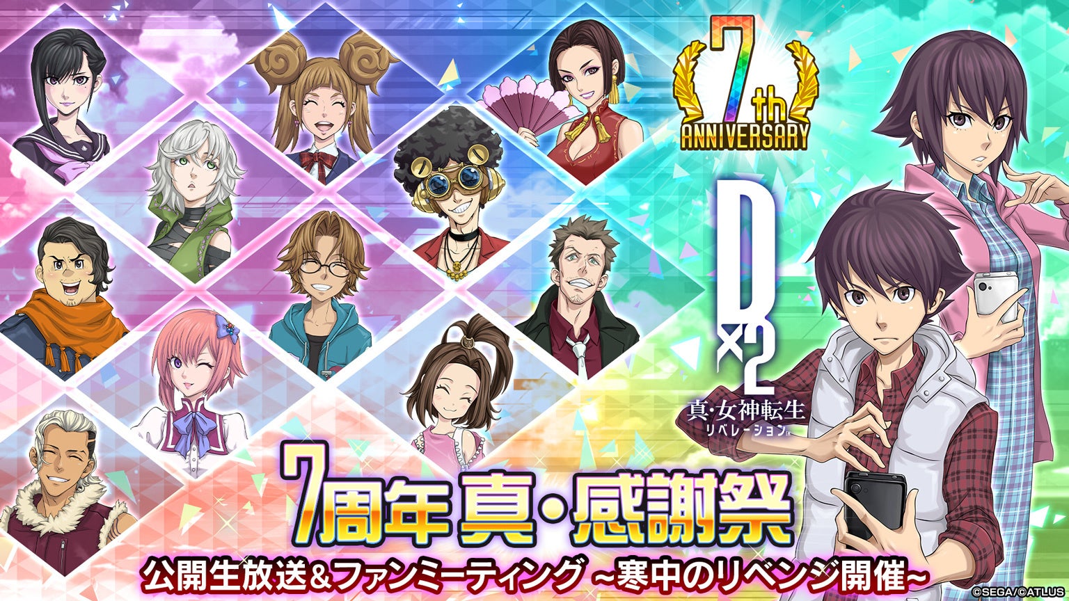 『D×2 真・女神転生 リベレーション』7周年を記念して、2025年1月18日(土)に大崎セガ本社内イベントスペースにて、「7周年 真・感謝祭 公開生放送&ファンミーティング~寒中のリベンジ開催~」を開催します。