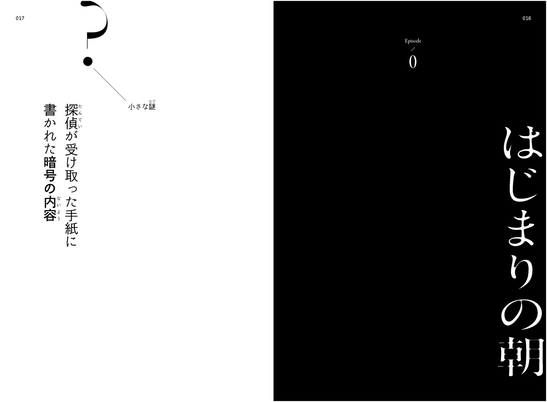 この本の主人公は読者自身。カバーと扉で描かれた「探偵」は読者を映す鏡のような存在だ。