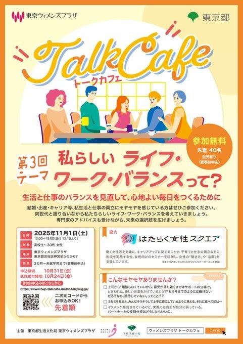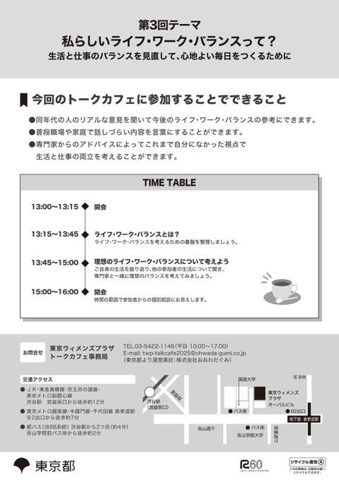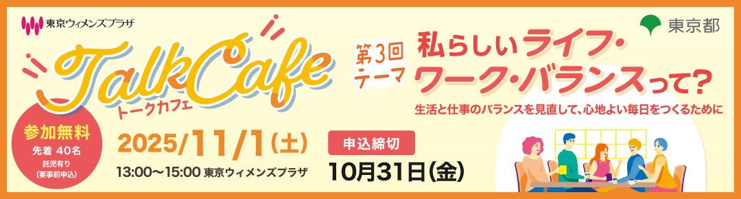 参加者募集【11/1(土)開催】「私らしいライフ・ワーク・バランス」について話しませんか?|東京ウィメンズプラザトークカフェ第3回