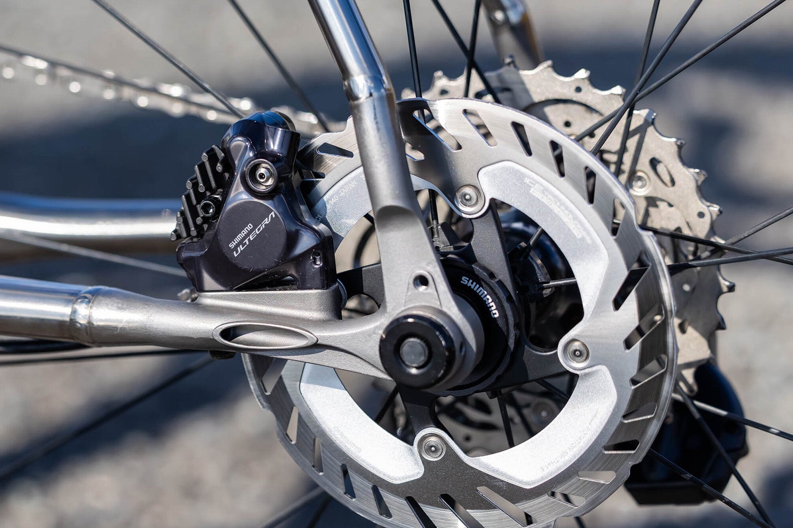 新製品「FRTD05」は上位モデルとして性能を突き詰めるため、独自に開発した技術で作り上げる3段階に厚みの異なる「3Dオプティマム・Xバテッド」加工を施したパイプでフレームを軽量化しました。またライダーの体格や脚力に合わせた選択肢を提供するため、剛性の異なる2タイプ(Version L/Version H)をご用意しています。「FRTD11」はスタンダードモデルとして、ストレートパイプ(均一な厚さのパイプ)を採用。ともにチタン素材ロードバイクの特性とされる、しなやかで軽快な乗り味が特長です。また、いずれのモデルもディスクブレーキ採用ロードバイクで主流となっているフラットマウントタイプのディスクブレーキに対応。ワンポイントファイブヘッド、スルーアクスルを採用することで剛性を向上させています。また両モデルとも、前モデルからアップグレードし、フルカーボンのフロントフォークを採用し軽量化しました。