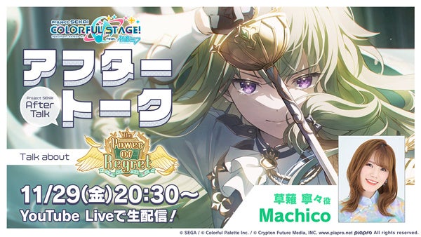 「プロセカアフタートーク The Power Of Regret編」を2024年11月29日(金)20:30よりYouTube Liveにて生配信いたします。