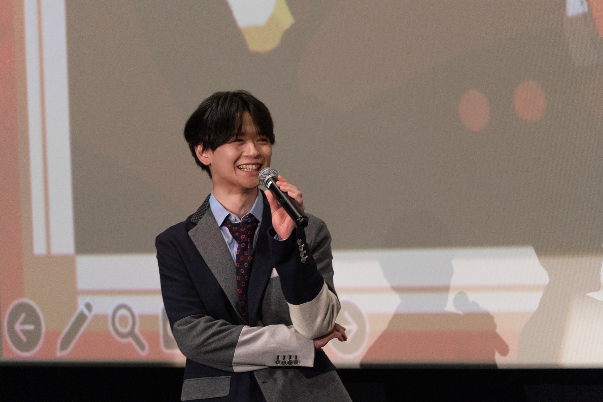 ここで、演じるキャラクターの注目ポイントを漢字一文字で紹介するバラエティコーナーを実施! トップバッターの土岐さんは、物語がより待ち遠しくなる言葉を準備したと前置くと、スクリーンに映されたのは、土岐さん演じる茜が好きなキャラクターを表す「葵」の文字。「やっぱり」と言わんばかりの声が起こりますが、今回はもう一文字用意してきたそうで、「嫌」の文字が映し出されます。