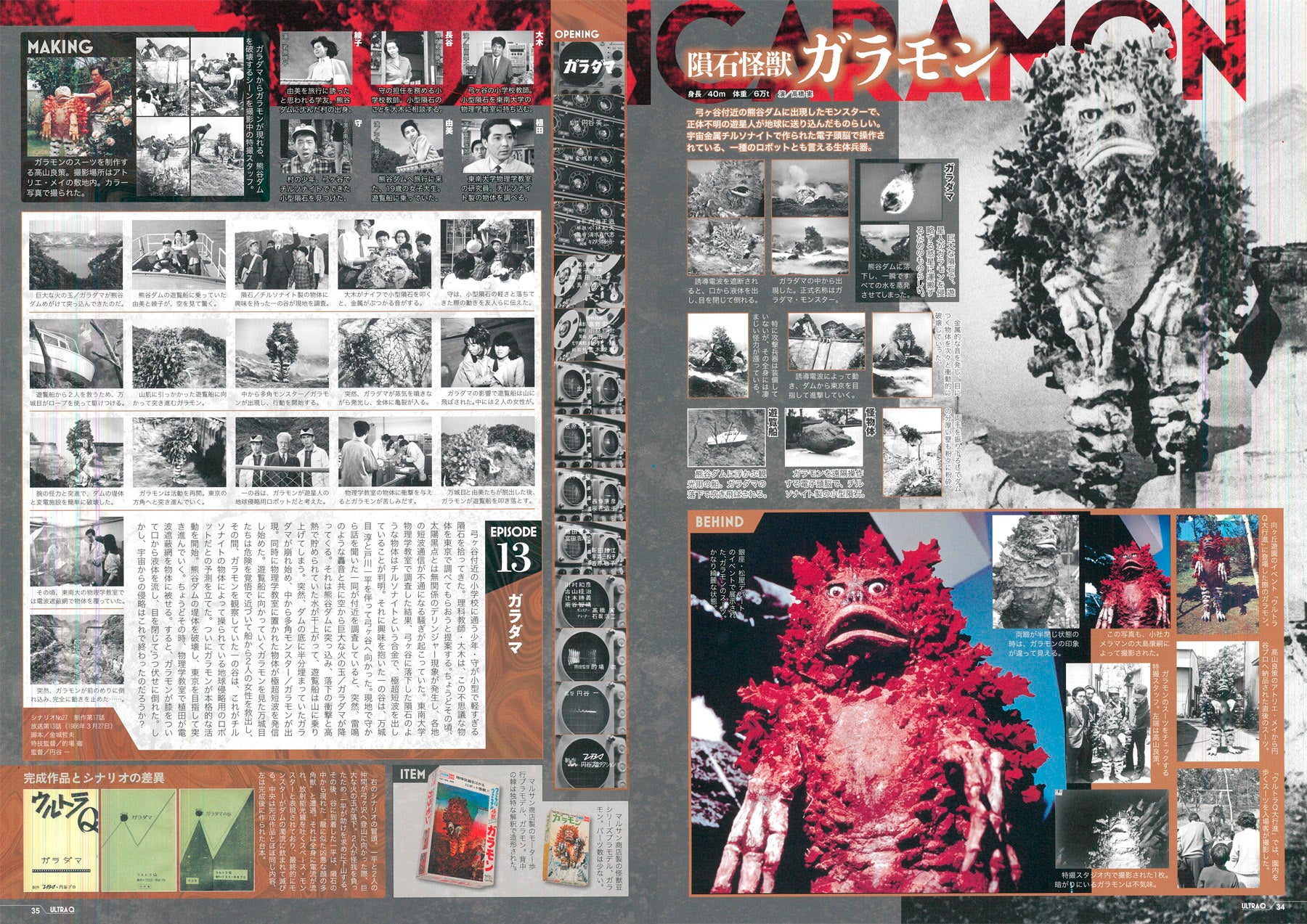 そんな2作品を詳細に分析したムックが『テレビマガジン特別編集 ウルトラQ EPISODE No.1~No.28 怪奇大作戦 EPISODE No.1~No.26』です。『ウルトラマン』『ウルトラセブン』で高い支持をいただいた「EPISODE」ムックの最新刊ですが、前2冊と同じく、キャラクター、登場怪獣、怪人、怪事件、メカ、ストーリーなどを詳細に解説する一冊です。