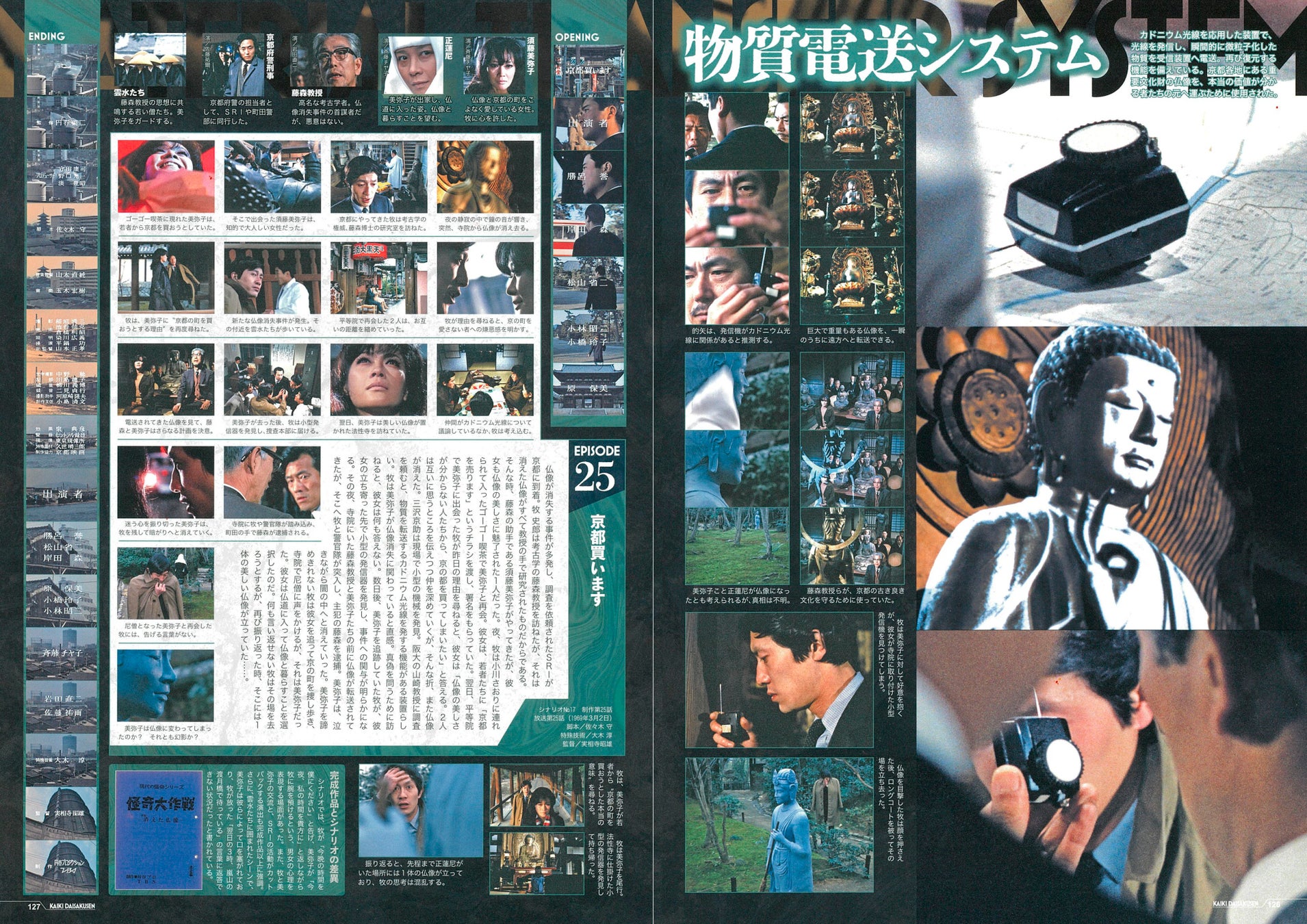 その中でも評判が高いエピソードといえば第25話「京都買います」でしょう。京都で密室からの仏像消失事件が続発、SRIが捜査に乗り出し、物質電送光線を使った犯罪であることをつきとめます。しかし、「SRIの頭脳」と呼ばれる牧の心は、事件にかかわっていると思われる女性に奪われていました。そしてまた新たな事件が……。