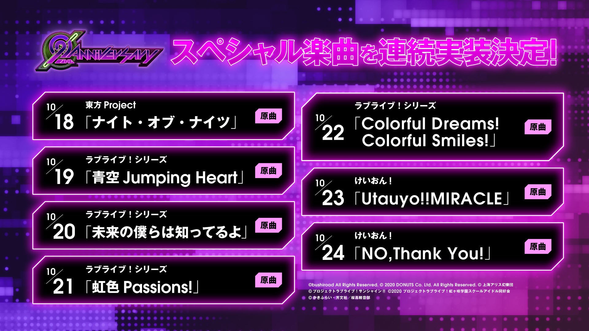- 10月18日(火)よりスペシャル楽曲を連続実装!