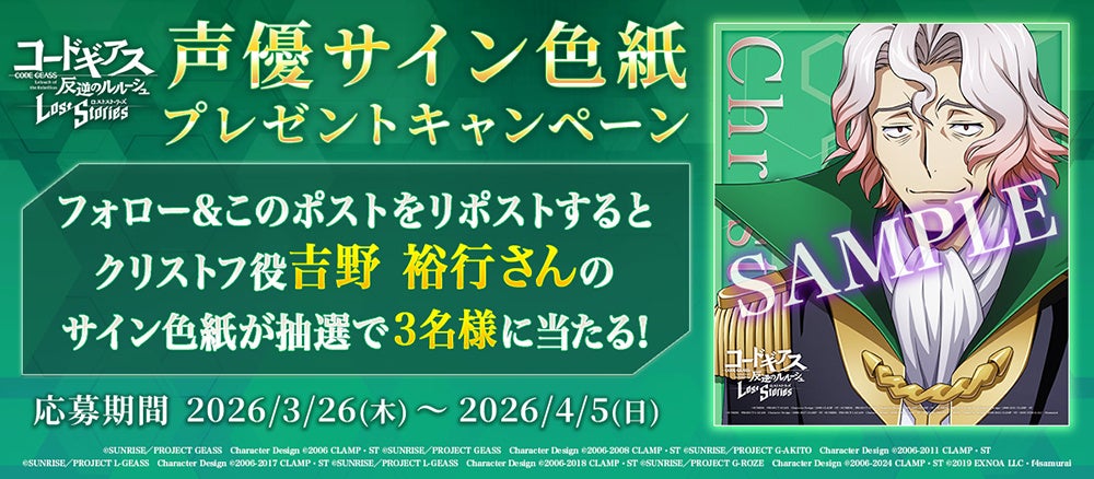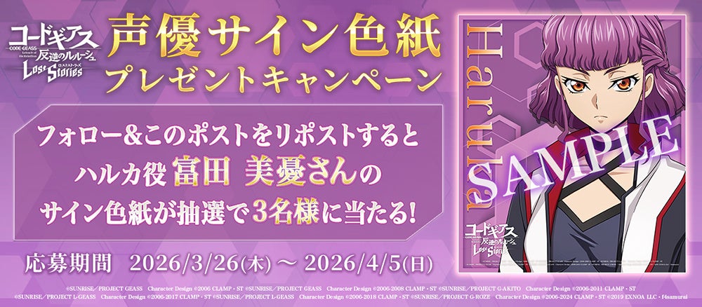 期間中にロススト公式Xをフォローし、対象のポストをリポストすると、富田美憂さん、吉野裕行さんのサイン入り色紙が抽選で各3名様に当たります。是非ふるってご参加ください!