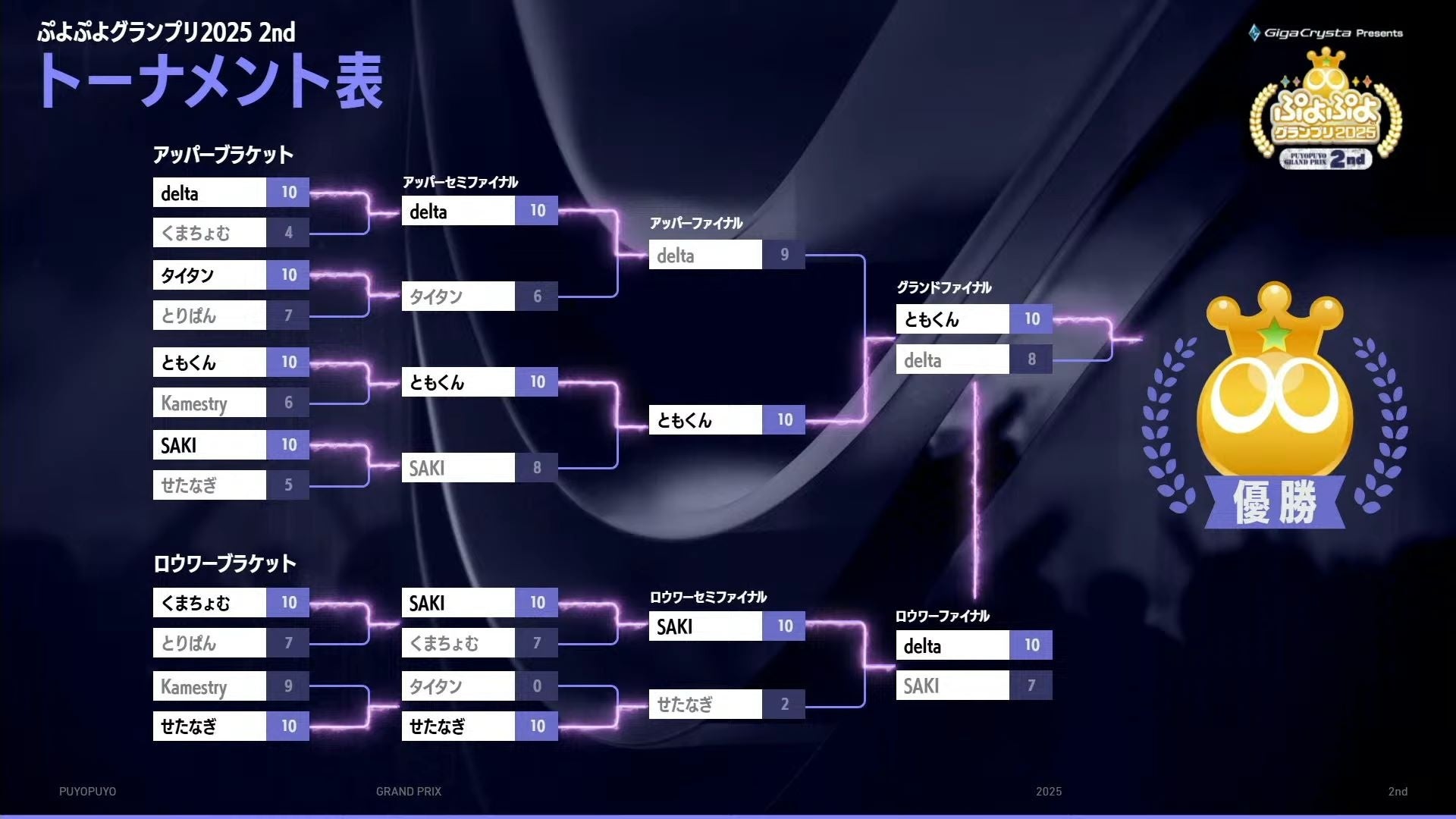 ■セガ公式プロ大会「GigaCrysta Presents ぷよぷよグランプリ 2025 2nd」結果