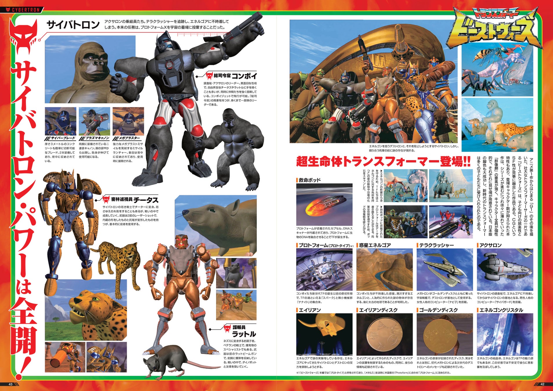 トランスフォーマー以外のアニメファンからの人気も高いCG版の『ビーストウォーズ』『ビーストウォーズメタルス』『ビーストウォーズリターンズ』だけではなく、当時メインターゲットの子どもに大人気を博した『ビーストウォーズⅡ』『ビーストウォーズネオ』も特集しています。