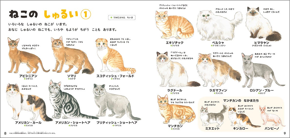 「子ども用の猫の図鑑かなと思ってましたが、イラストがかわいく大人もいやされてほんとに買って良かった」(8歳・親)