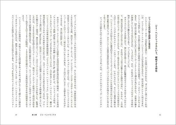 1960年代後期以降、ジャズという表現が多様化し指し示す意味が広がる過程において、エレクトリック・ギターはその変化を肯定する楽器として多用されることとなった。本書は「ギターは王道ジャズにおいて傍系の楽器であった」という視点から出発して、他ジャンル語彙も抱えた越境するギタリストがジャズの現代化を図る過程を描くものである。米国ブラック・ミュージック史におけるジャズの再考、マイルス・デイヴィスやオーネット・コールマンら先駆者たちに重用されていく過程、オルガン・ジャズにおける位置付け、ECMレコードによる重用、レディオヘッドからの影響などを通じて、これまでのジャズの正史では語られることのなかった視点で論じる。