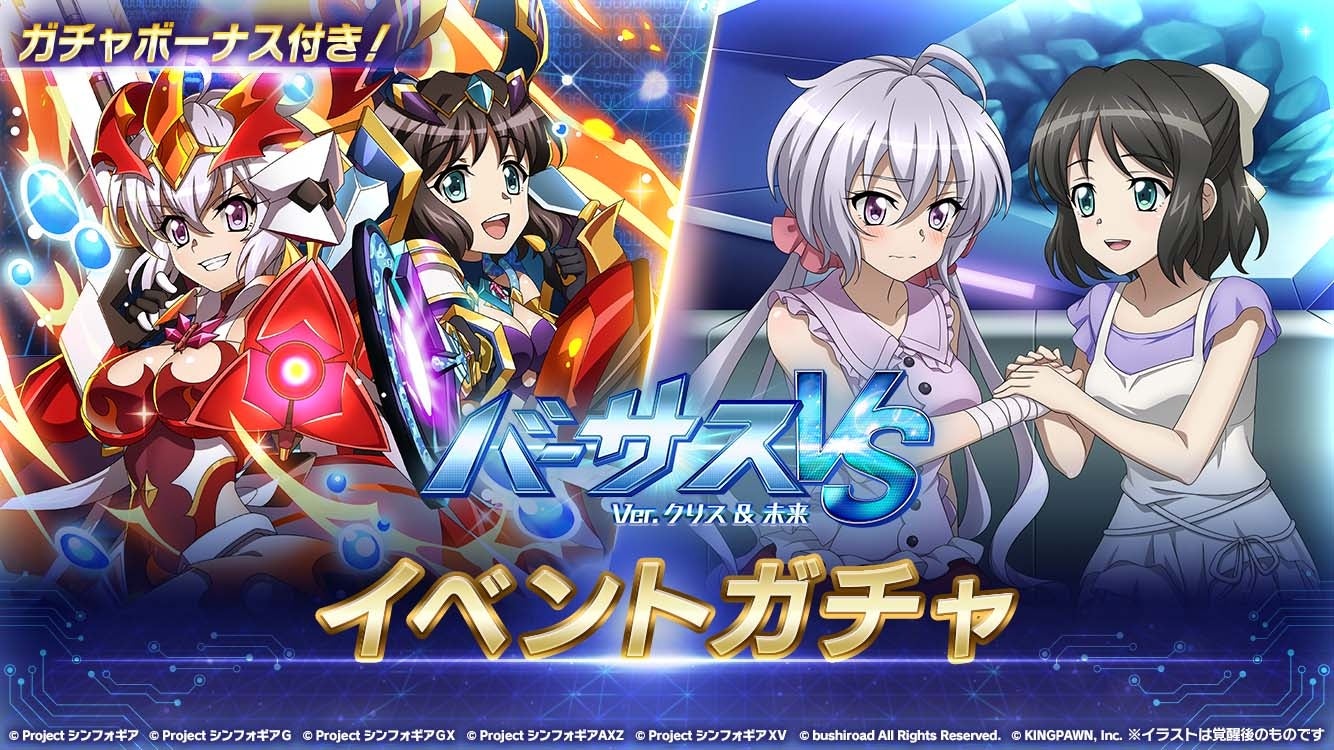 株式会社ブシロード(本社:東京都中野区、代表取締役社長:木谷高明)と株式会社キングポーン(本社:東京都中央区、代表取締役社長:清水祐一)は、好評配信中のスマートフォン向けゲームアプリ「戦姫絶唱シンフォギアXD UNLIMITED」にて、「バーサスイベントVer.クリス & 未来」を2022年10月14日(金)18:00より配信開始したことをお知らせします。
