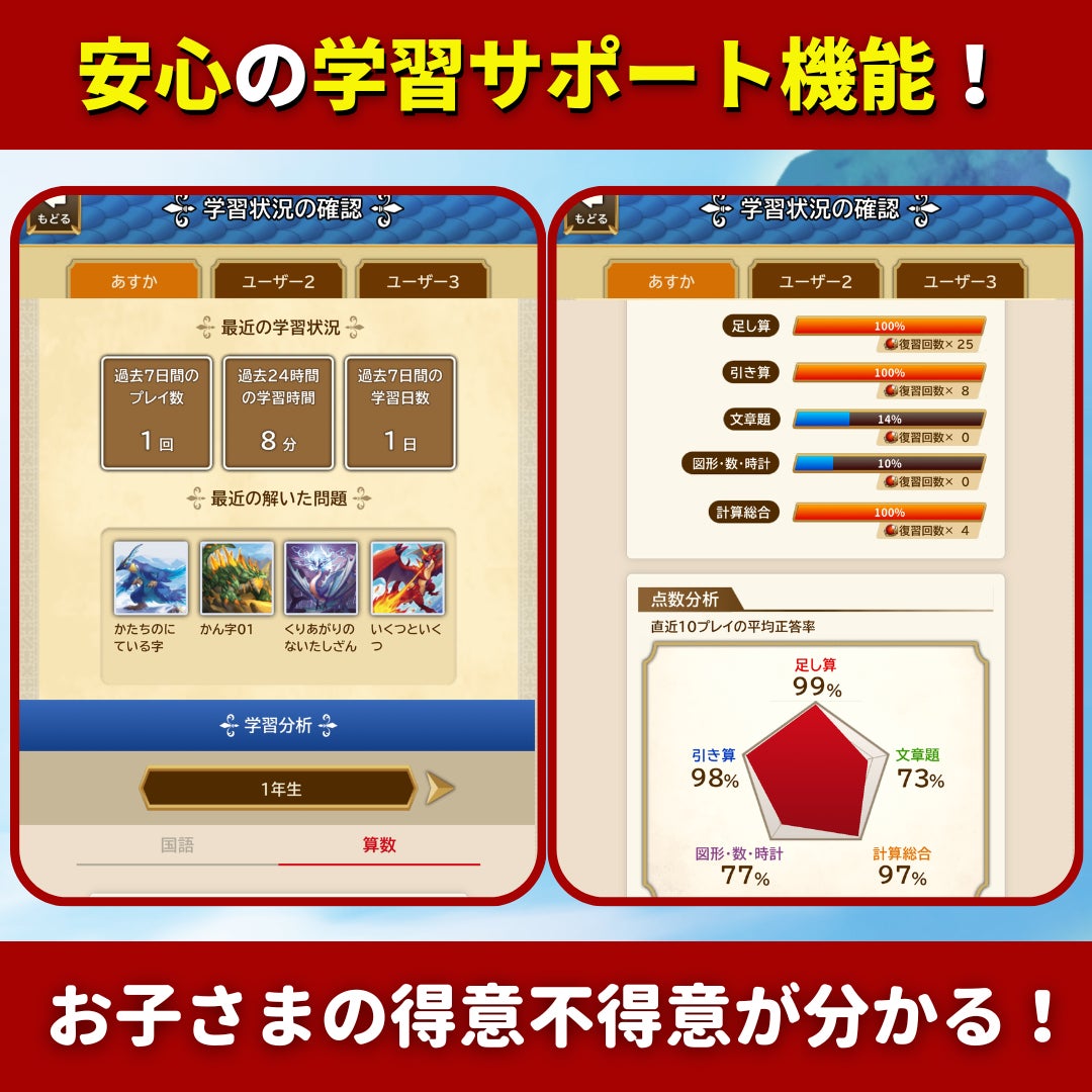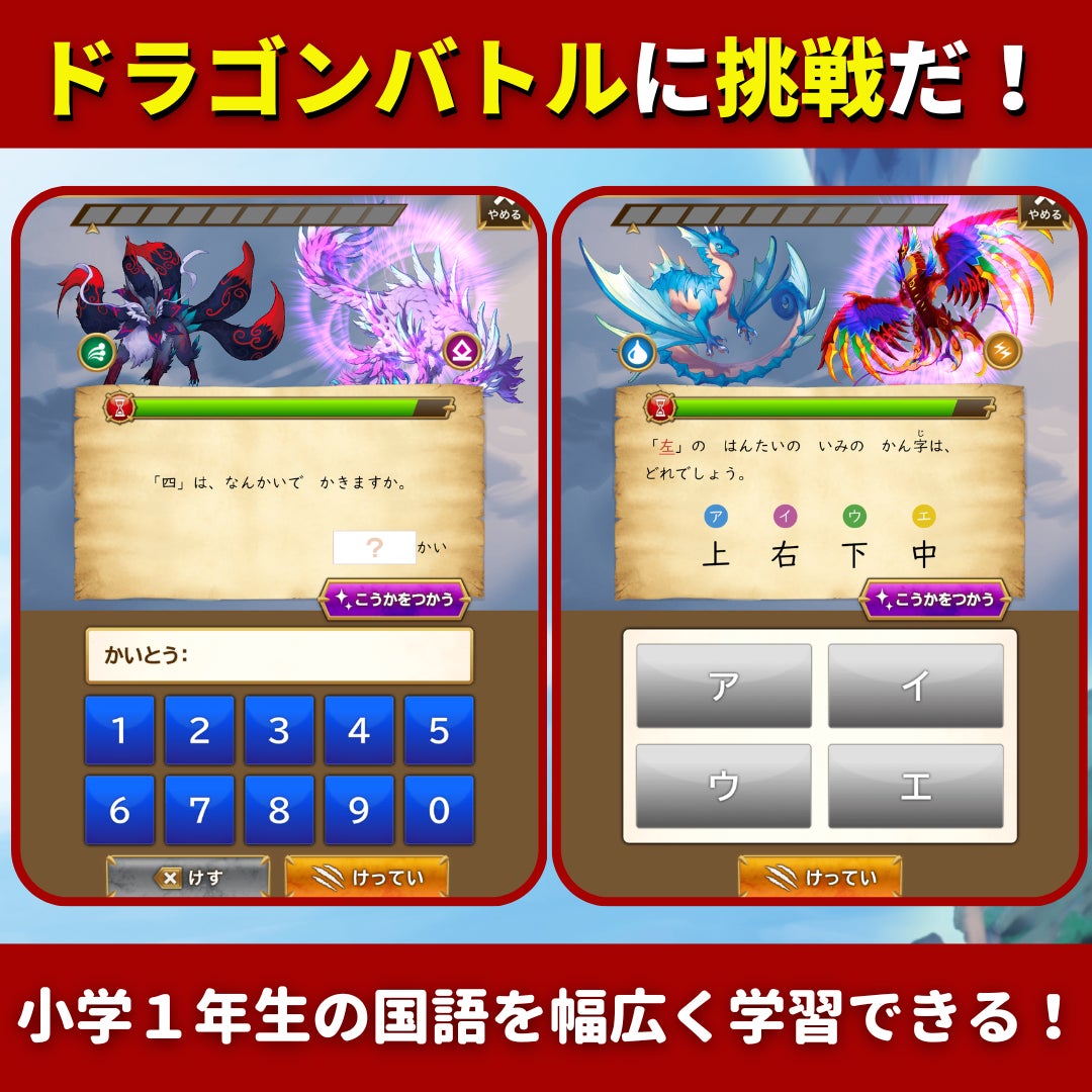 かっこいいドラゴンとバトル形式で楽しみながら繰り返し学習できるから、着実に力がつきます!