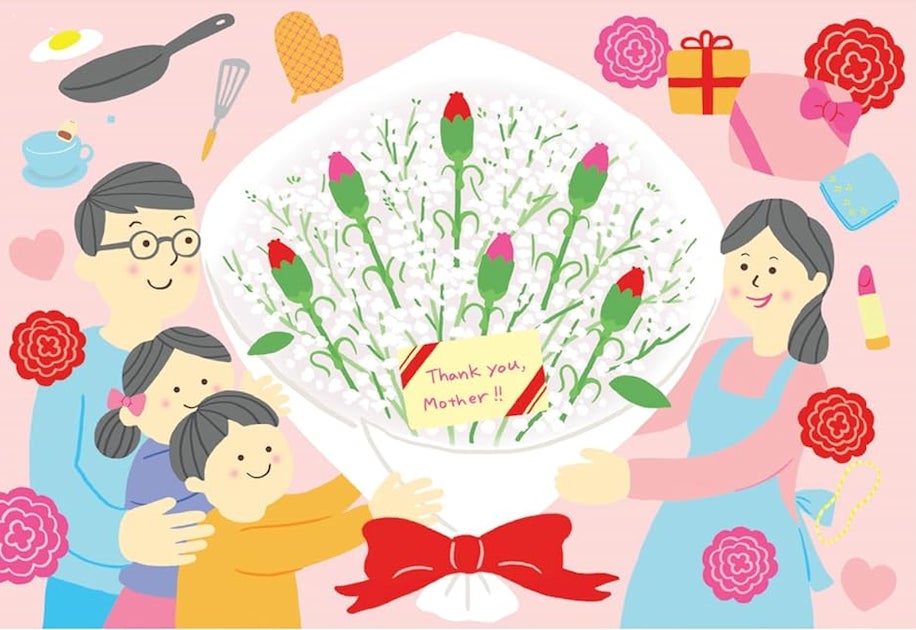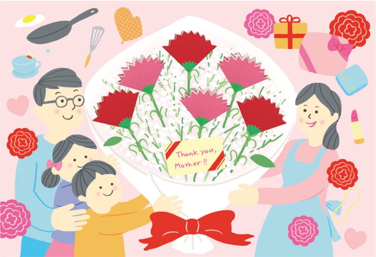 5月の完成イメージ。工作したカーネーションの花を蕾に貼り、開くと中にメッセージが書き込めるようになっています。