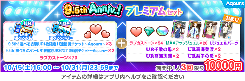 株式会社ブシロード(本社:東京都中野区、代表取締役社長:木谷高明)は、KLab株式会社(本社:東京都港区、代表取締役社長:森田英克)と共同開発いたしましたスマートフォン向けアプリ『ラブライブ!スクールアイドルフェスティバル』(以下、スクフェス) においてスクフェス9.5th Anniversaryキャンペーン第1弾の開催をお知らせいたします。