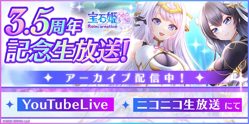 『宝石姫 Reincarnation』の3.5周年を記念した生放送が3月29日(日)に放送されました!