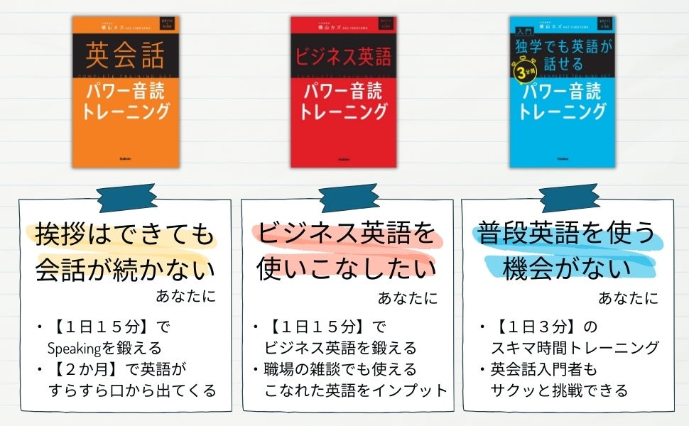 株式会社 学研ホールディングス(東京・品川/代表取締役社長:宮原博昭)のグループ会社、株式会社 Gakken(東京・品川/代表取締役社長:五郎丸徹)は、『英会話パワー音読トレーニング』、『ビジネス英語パワー音読トレーニング』、『入門・独学でも英語が話せる3分間パワー音読トレーニング』の3冊を2024年4月25日(木)に発売いたしました。