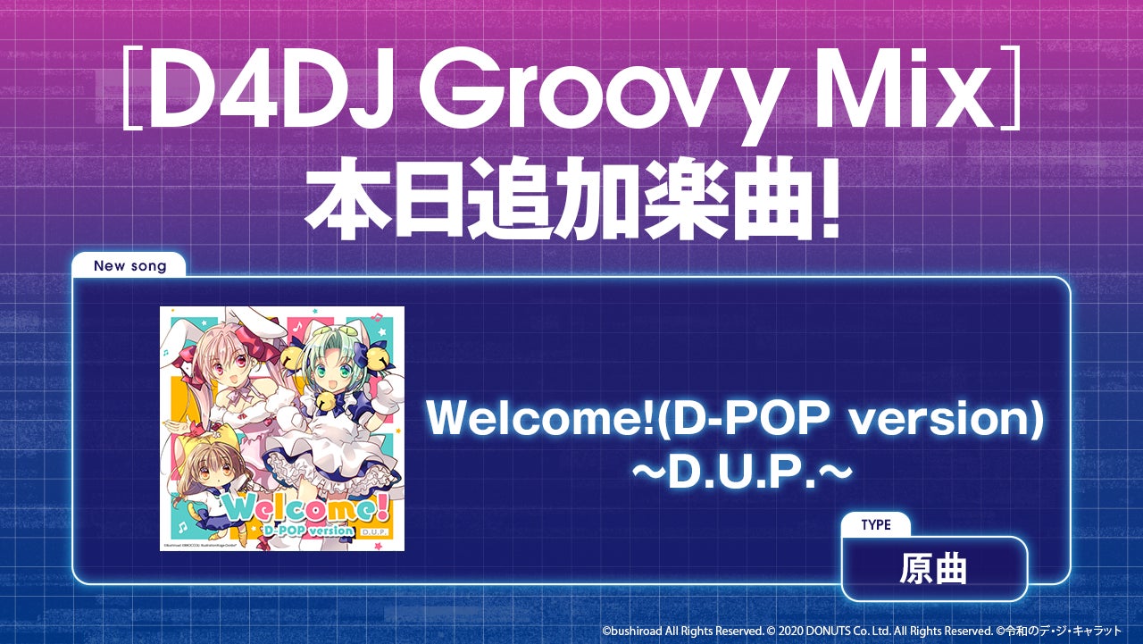 - コラボ楽曲として「曖昧さ、幸福論」と「Welcome! (D-POP version) ~D.U.P.~」を実装!