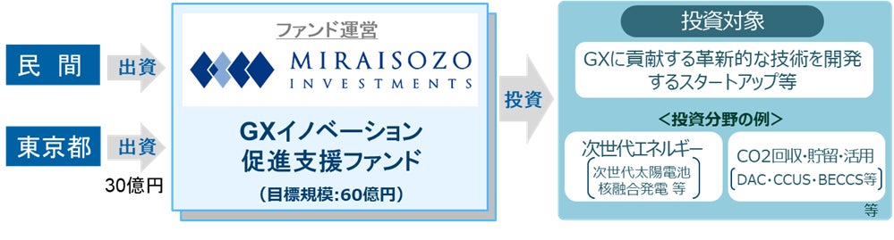 そこで都は、こうしたスタートアップ等への支援を通じた、持続可能な社会の実現への貢献及び民間企業と連携した新たな資金の流れの構築を目指して、「GXイノベーション促進支援ファンド」の創設を進めています。