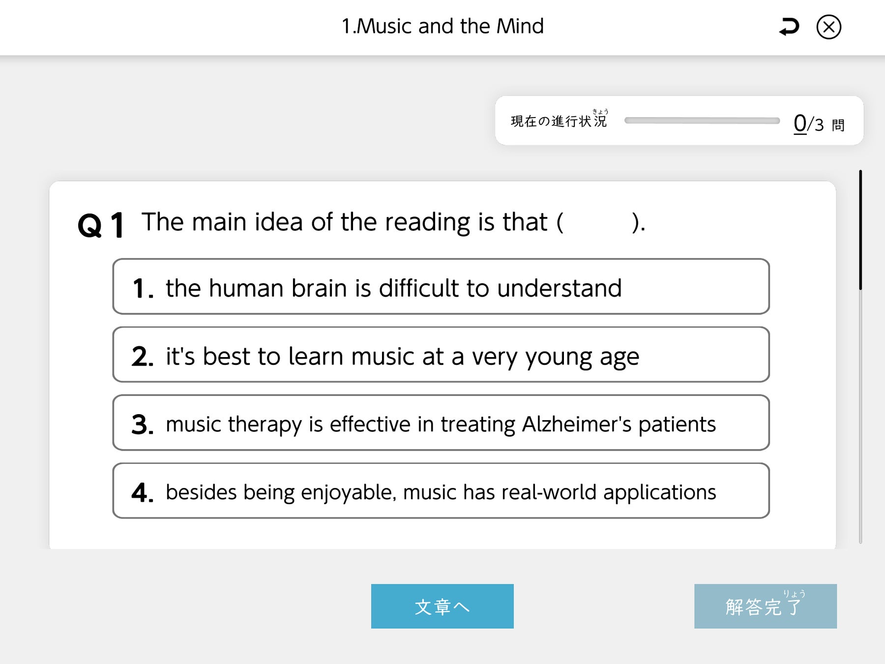 まずは現在の読書速度を調べます。正しく読めているかを確かめる設問もあります。
