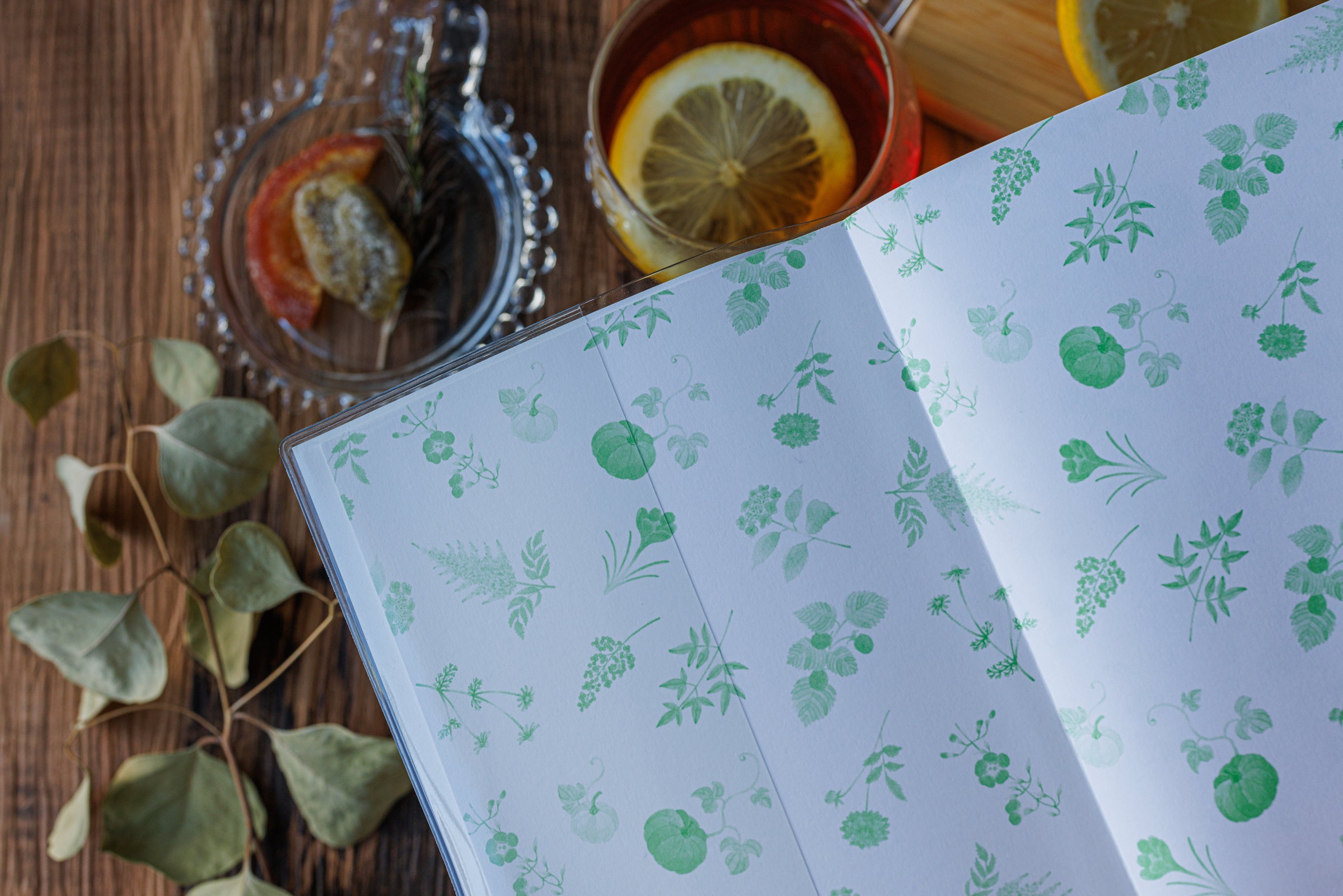 見返しにも誌面に登場する植物イラストをあしらい、細部までこの手帳の世界観を楽しめるようにしています。