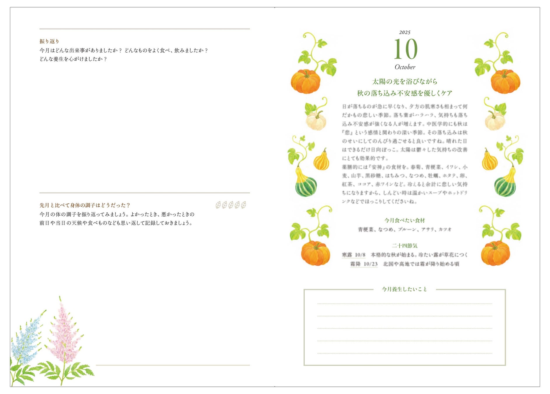 ■『1年をおいしくすこやかに過ごす養生手帳2025』の仕様