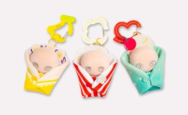 いつも一緒にいたいくらい可愛くて大事な推しぬいを自分でくるむことでさらに慈しみながら持ち歩けるおくるみ型キーホルダーチャーム。