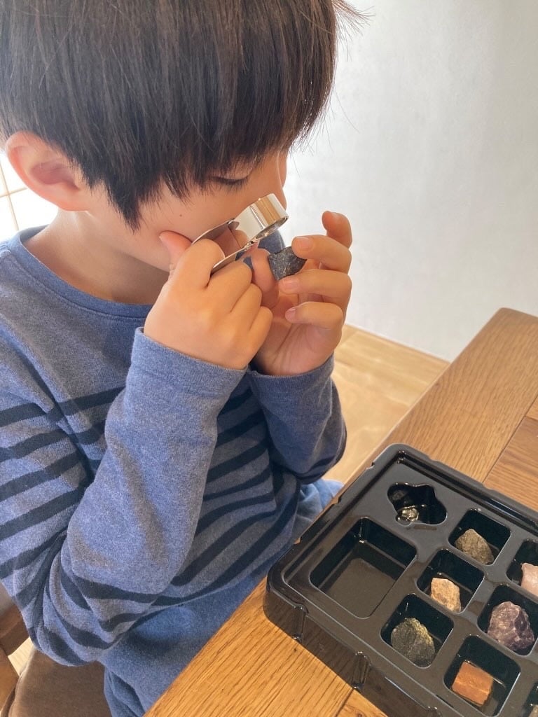 鉱物を磨いたり、実験したり、10倍観察ルーペで観察したり。モニターのお子さんや、プレゼントされて大喜びのお子さんたちが、たくさんSNSに投稿してくれています。