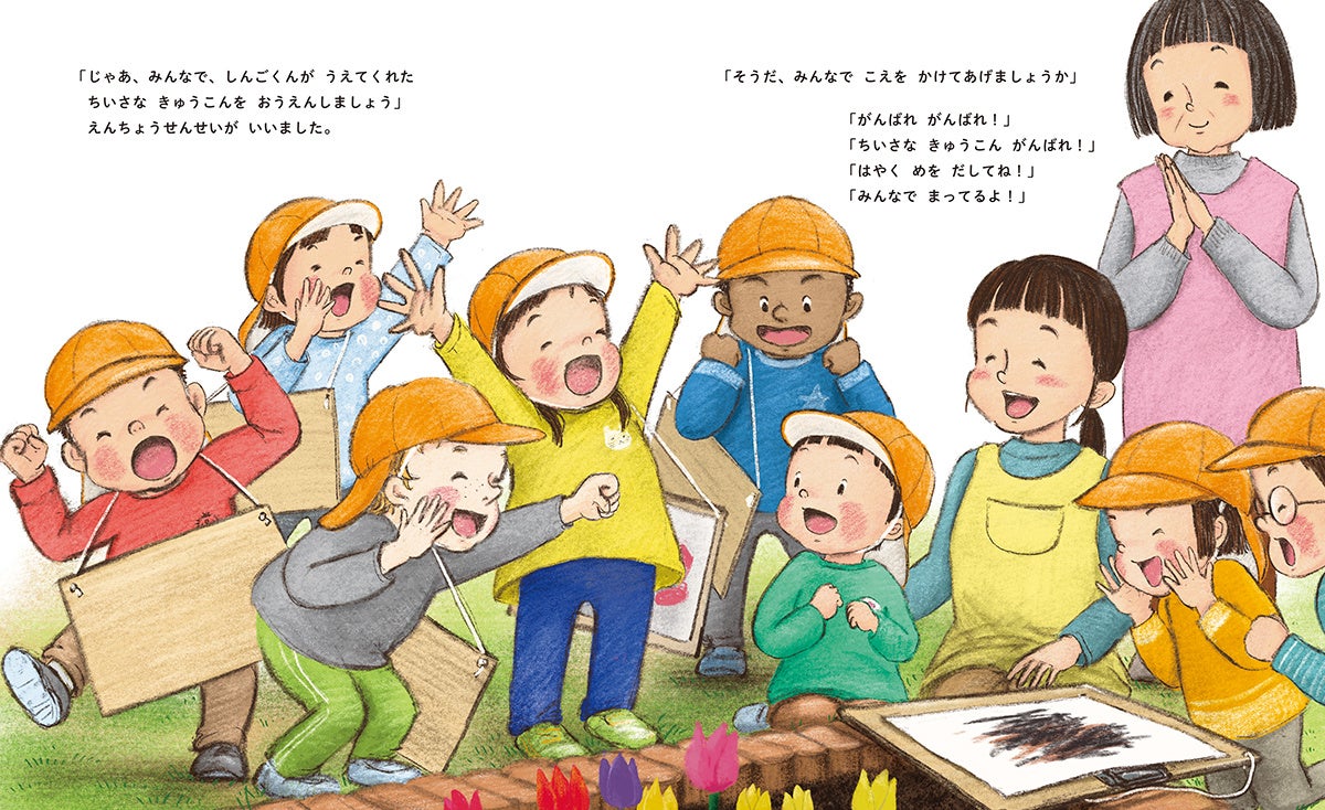 『チューリップさいた』はお花を愛でる気持ちをきっかけに、みんなで、みんなを、応援するストーリー。