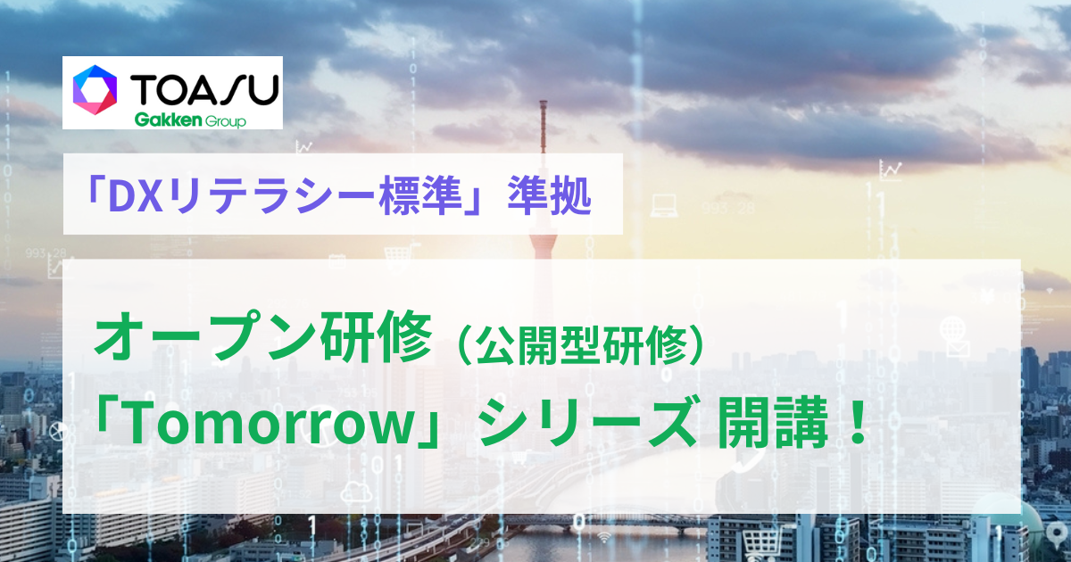 学研グループの株式会社TOASU、1名から参加できる「DXリテラシー標準」準拠のオープン研修(公開型研修)「Tomorrow」シリーズを開講!