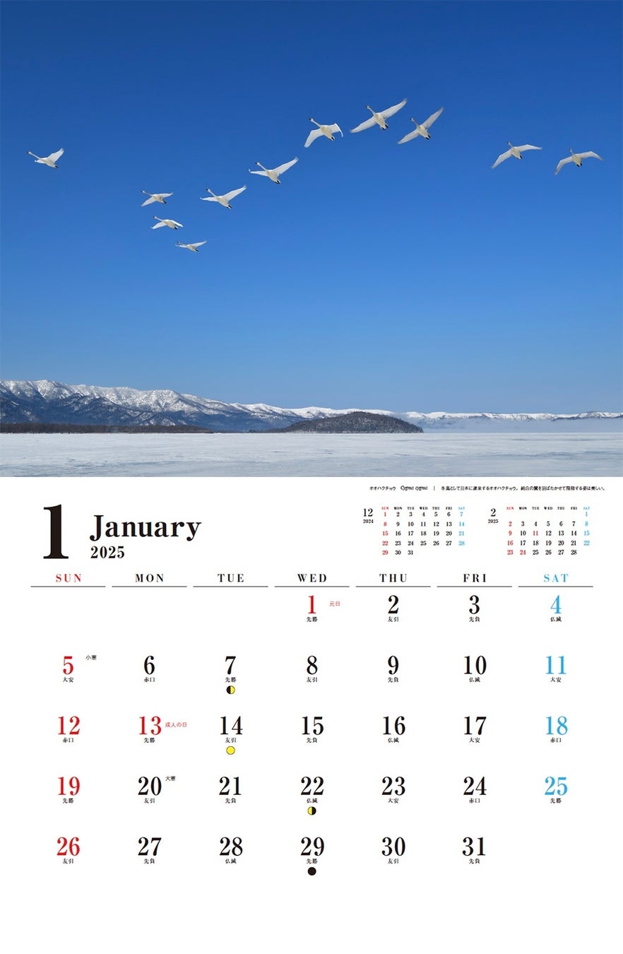 「モフモフした動物のカレンダーばかりだなあ」という声を受けて制作した、野生の中でたくましく生きる鳥たちのカレンダーです。自然の中で食べ、歌い、群れを成す大小の鳥たちを、日本を代表する野鳥写真家の一人である中野耕志さんの美しい写真でお届けします。
