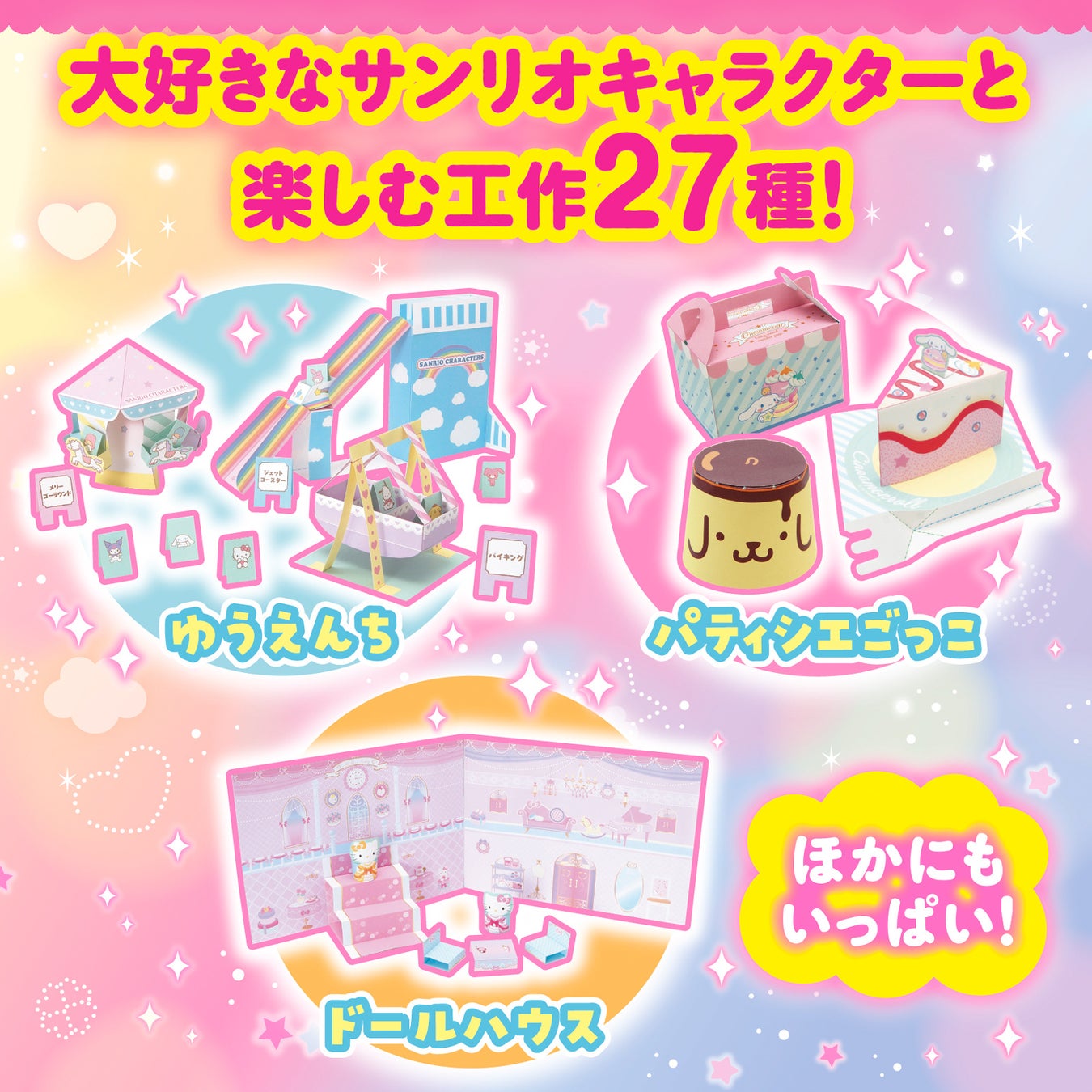 人気のサンリオキャラクターたちと、かわいい工作を楽しめるドリルが登場! 作った後も、ごっこ遊びやゲームで遊べるよ♪ 作り方や遊び方がよくわかる動画付き!